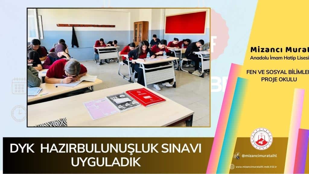 Öğrencilerimizin derslerdeki seviyelerini görmek amacıyla "DYK Hazırbulunuşluk Sınavı" yapıldı. Hedef 2026 YKS Koordinatörümüz Ömer Çetin'e ve sorularıyla destek olan öğretmenlerimize teşekkür ederiz.